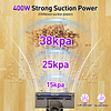 The KUOSE cordless vacuum cleaner is an absolute powerhouse! This amazing little machine has a high-performance 400W brushless motor that delivers an impressive 38Kpa of strong suction on max mode! We've made sure you're never left in a sticky situation with three different suction modes (15KPA/25KPA/38KPA) to choose from. Not only are they super helpful, but they also help save power!
