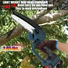 【Cordless Portable Chainsaw】Portable MINI chainsaw weighs only 2.05Lbs and around the 14-inch length. small in size, comfortable to hold, and lightweight places. It can be used with one hand and not easy to fatigue for long-term use. Even beginners can operate with ease. The best thing about the electric chainsaw cordless is that it is easy to carry around and fits into small spaces.