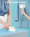 With the 40% larger heat panel, and high-temperature, high-speed steam, our hand held steamer allows for a quick wrinkle release for last-minute touch-ups. The innovative 90°rotatable head offer flexibility to choose flat or hang use. This 2 in 1 steamer and iron can get into smaller creases in collars and pant legs, keep you look presentable at meeting, dating, presentation.